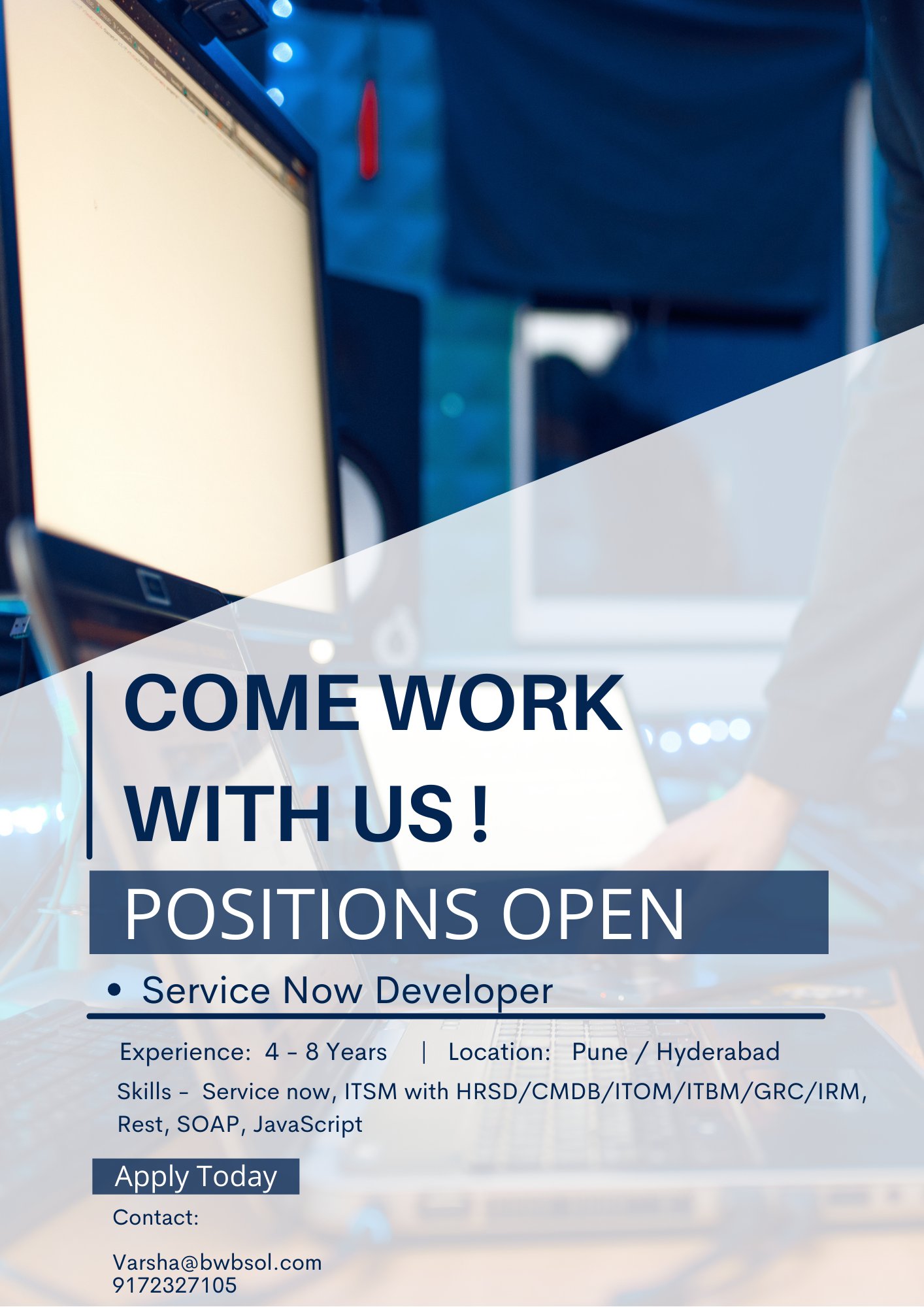 Brainworks Business Solutions On Twitter Wearehiring Position Service Now Developer Skills Service Now Itsm With Hrsd Cmdb Itom Itbm Grc Irm Rest Soap Javascript Experience 4 8 Years Location Pune Hyderabad Brainworks Humanresources Pune